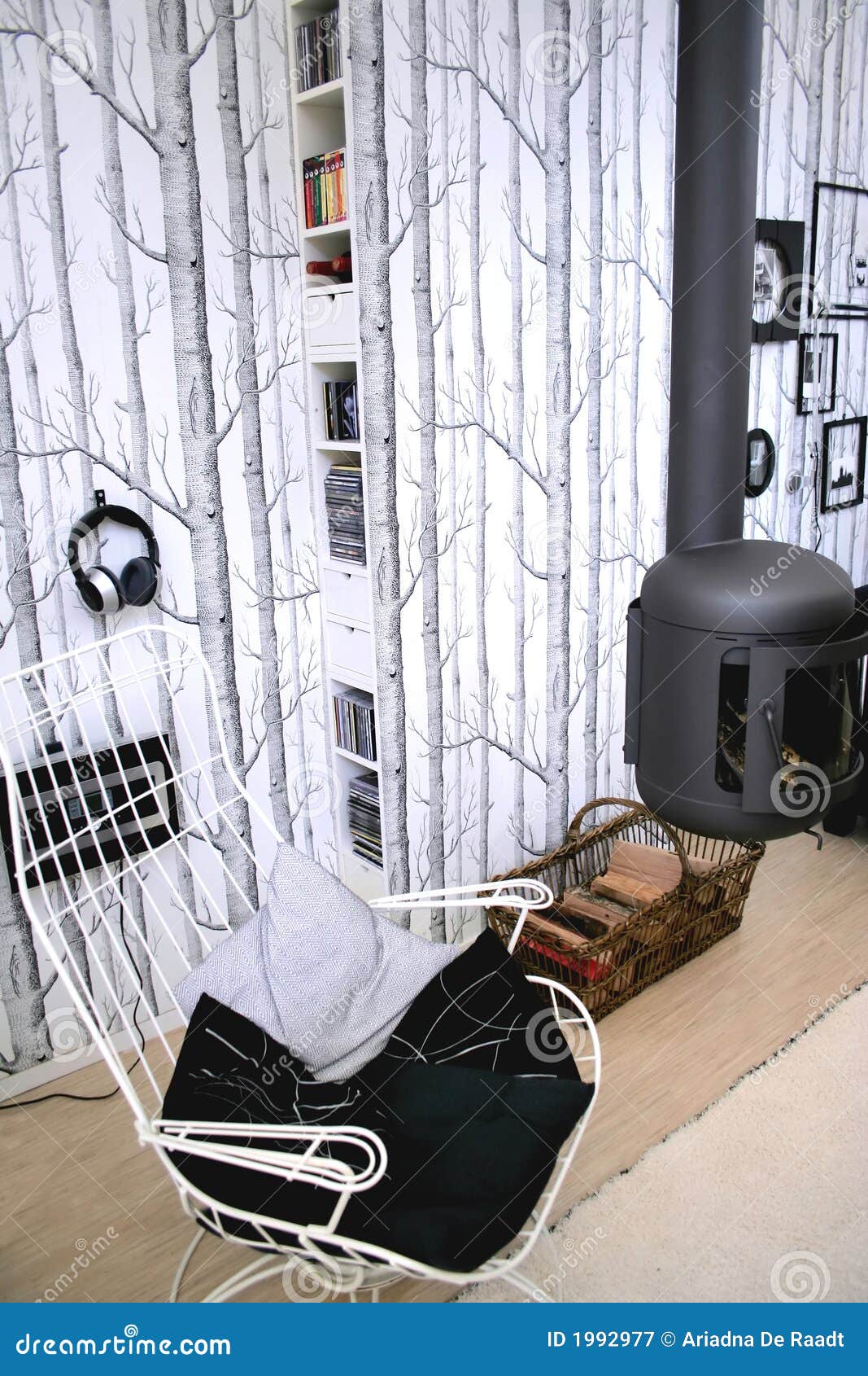 Wallpaper In Design Of Interior Stock Image - Image Of Entertain, Cozy